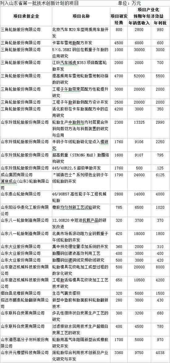 前不久,2015年山东省第一批技术创新计划项目已经下达,三角轮胎股份有限公司等13家橡胶行业企业的28个项目列入计划。