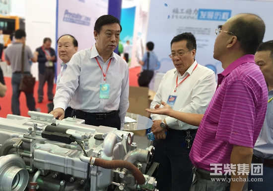 天津公交集团董事长于秉华、中国道路运输协会城市客运分会理事长张国光等领导来到玉柴展厅,询问了YC6L-60发动机的相关情况,天津办事处主任魏哲详细介绍了玉柴欧Ⅵ和国5发动机产品特点以及技术路线。