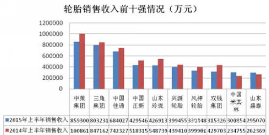 按轮胎销售收入排名,前10位企业依次为:中策橡胶集团、三角集团、佳通(中国)、厦门正新、山东玲珑、兴源轮胎、风神轮胎、双钱集团、米其林(中国)及山东盛泰。其中,米其林(中国)、盛泰轮胎销售收入保持增长。
