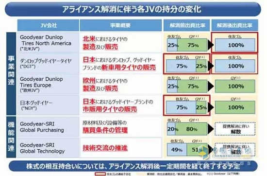 固特异(目前持有25%股权)将收购住友橡胶在日本固特异公司中持有的75%股权,固特异将获得为日本市场独家提供固特异替换胎和配套胎的权利。