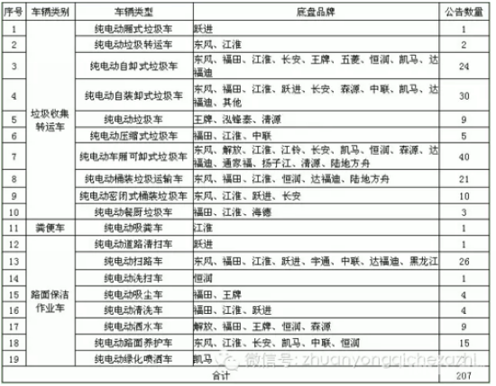 纯电动环卫车车型公告情况表