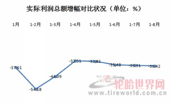据中国橡胶工业协会轮胎分会统计,2015年1-8月份,其44家重点会员企业完成现价轮胎产值1183.38亿元,同比下降13.04%;实现轮胎销售收入1069.16亿元,同比下降12.70%。