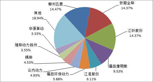 2015年1-10月轻卡发动机配套企业市场份额(单位:%)