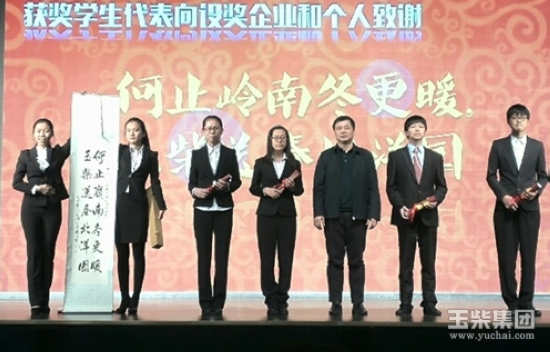 对于玉柴的奖励和资助,获奖学子铭记于心。一位学生送上了书法条幅“何止岭南冬更暖,玉柴送春北洋园”,向玉柴表达了他们的感激之情。