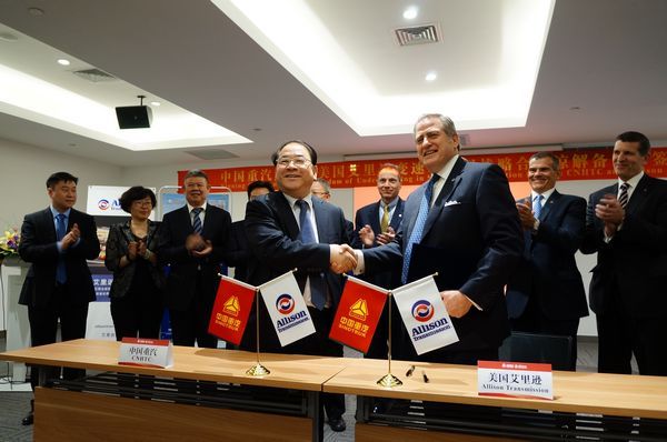 2017年4月19日,上海讯 –艾里逊变速箱股份有限公司(纽约证券交易所股票代码:ALSN)和中国重型汽车集团有限公司(CNHTC)于2017年4月19日宣布开拓战略合作关系,优化全自动变速箱技术,服务中国市场。来自两家公司的高层领导在2017年上海车展期间举办的仪式上共同签署了合作协议。
