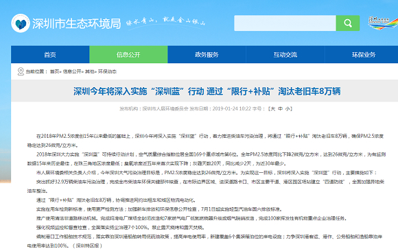 深圳市生态环境局发布公告称,今年将深入实施“深圳蓝”行动,通过“限行+补贴”淘汰老旧车8万辆!突出抓好32.9万辆柴油车污染治理,完成全市柴油车环保关键部件核查,在市际边界区域、进深道路卡口、市区主要干道、港区园区场站建立“四道防线”,全面加强异地柴油车整治。