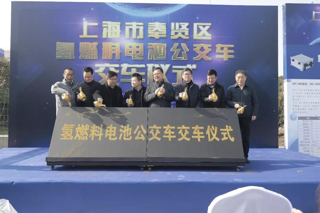 2019年1月18日上午,“上海市奉贤区氢燃料电池公交车交车仪式”在上海神力科技有限公司(以下简称“上海神力”)举办。由上海神力联合上海申龙客车有限公司研发的两款氢燃料电池公交车,正式交付上海奉贤巴士公共交通有限公司、上海奉贤汽车客运有限公司,实现首次上海市氢燃料电池公交车“非项目性商业化”交付。上海市科学技术委员会副主任干频、上海市奉贤区人民政府副区长顾佾、上海市新能源汽车推进办公室主任刘建华等