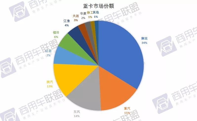 重卡销量前十企业1月份合计份额达到98.51%,而排名前五的企业合计份额就达到82.28%,其中排名首位的一汽解放一家企业就独占33.86%,一家独食了1月份超1/3的份额,霸主地位可谓是从2018年延续到2019年。