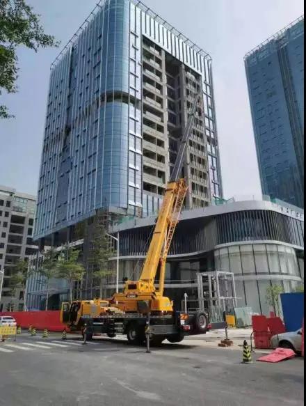 深圳,雄伟的高楼象征着都市的气息,蔚蓝的天空下,一台金黄色的徐工汽车起重机正在露天作业。随着全国各地最严排放标准的相继实施,对于不满足排放要求的汽车起重机,几乎不允许在市区工作。