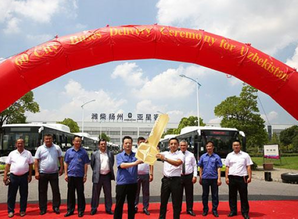 2019年8月3日上午,扬州亚星客车工业园区内举行盛大仪式——乌兹别克斯坦城市公交发车,这批车辆代表着乌兹别克斯坦从中国进口公交新突破。