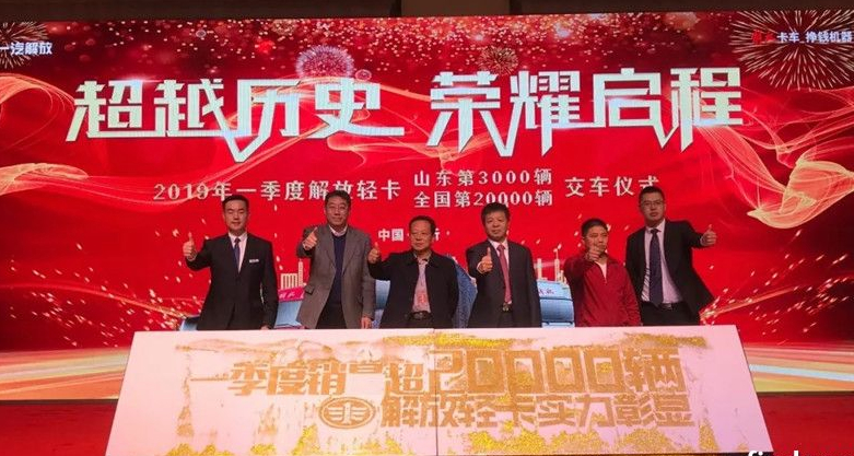 4月13日,一汽解放轻卡2019年度,山东区域第3000辆暨全国第20000辆解放轻卡用户交车仪式,于山东临沂华盛江泉酒店开启。解放公司副总经理兼一汽解放青岛汽车有限公司党委书记尚兴武书记发表讲话,表达了对各界的感谢与支持。各地区经销商及绝对伙伴代表等200余人共聚一堂,见证共同奋斗的荣光。