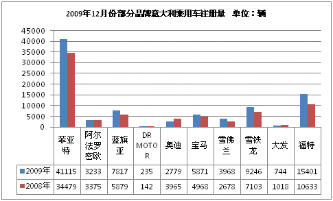 2009年1-12月份意大利部分乘用车注册量统计(分品牌)