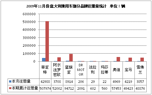 2009年1-12月份意大利部分乘用车注册量统计(分品牌)
