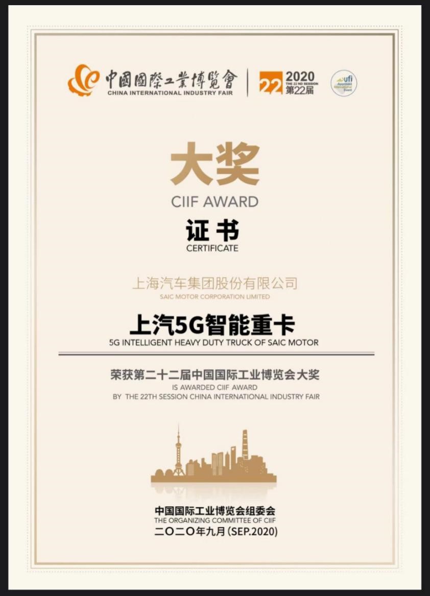 2020年9月15日,为期5天的以“智能、互联——赋能产业新发展”为主题的第22届中国国际工业博览会(以下简称“工博会”)在国家会展中心(上海)揭开序幕。首日即传喜讯,此次工博会上上汽依维柯红岩商用车有限公司(以下简称“上汽红岩”)“5G+L4智能重卡”从上百个参评项目中脱颖而出,一举荣获CIIF2020工博会大奖。