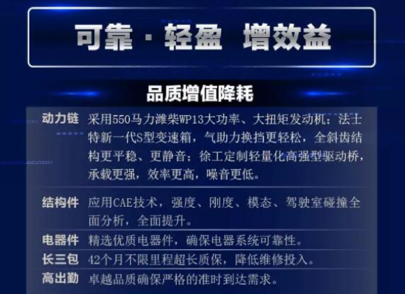 近日,徐工重卡的苏州经销商举办了一场智能环保渣土车主题推介活动,徐工重卡营销公司相关领导参加了此次活动,140余位客户受邀到场,现场成交100余辆汉风G7渣土车。本次苏州推介会上成交的百余辆渣土车是汉风G7法规版5.8米渣土车,动力强劲,可靠耐用,后期维修保养成本低,拥有工程车领域公认的经典动力链。