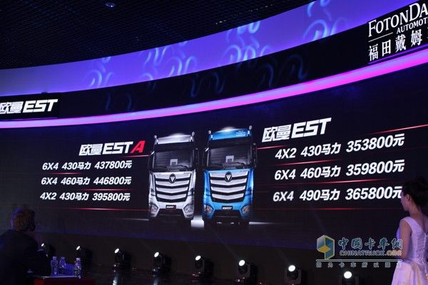 其中欧曼EST-A超级卡车首批上市的三款车型,包括6X4驱动430马力输出、6X4驱动460马力输出及4X2驱动430马力输出三种动力总成配置,官方指导价格分别为43.78万、44.68万及39.58万元。而EST超级卡车首批上市的三款车型则包含4X2驱动430马力输出、6X4驱动460马力输出及6X4驱动490马力输出的三种动力总成,官方给出的指导价格为35.38万、35.98万及36.58万元,实惠价格超越用户期待。