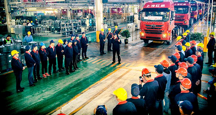 3月31日下午5点,上汽红岩整车装配车间下线区热烈非凡,在经过公司全员一个月的鏖战后,迎来了一个新的历史性时刻,3月整车生产4517辆,创下整车单班月产新纪录,标志着上汽红岩产销大会战首战告捷。