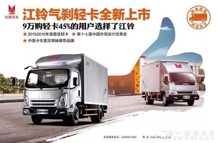2014年,江铃首款高端重载气刹轻卡凯锐800H成功上市,江铃进军气刹轻卡领。2017年,推出凯运升级版气刹轻卡,销量一路走高。近日江铃顺达宽体气刹轻卡上市。