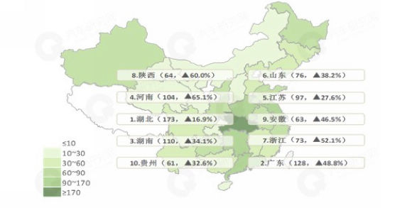 随车起重运输车市场主要集中在湖北,广东等地区,随车起重运输车销量前十的地区销量都呈现正增长,总体市场表现良好。