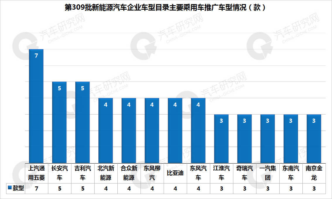 1、第309批新能源汽车企业车型目录乘用车推广车型分析