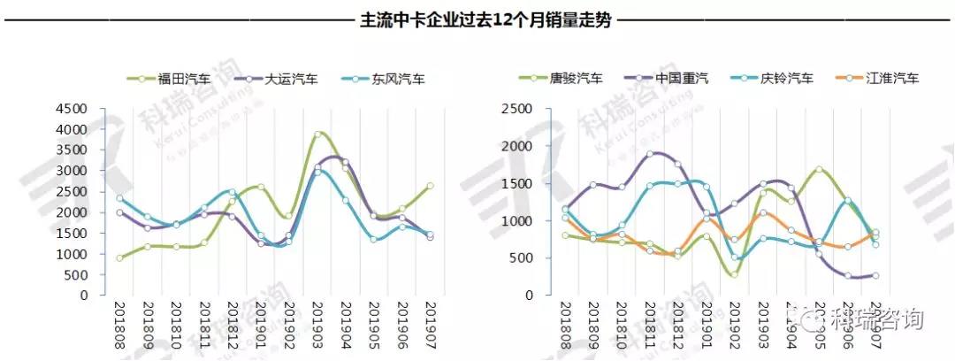7月,中卡销售1万辆,同比下降9.2%;1-7月中卡累计销售8.2万辆,累计下降26.8%。