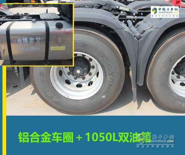 全车使用的是铝合金车圈,配合真空轮胎,这样的组合对于长途运输来讲再合适不过。后桥采用全封闭式的挡泥板,增加车辆的整体性也更加美观,在下雨天也可以防止泥水的飞溅。车辆还标配了1050L双油箱,提高了续驶里程,长途再也不用担心了。最后有一个小细节,后轮全部都是全包围挡泥板,现在很少在原厂看到这些配置,着实难得呀。