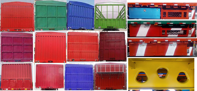 | 备注 | 车厢底板至仓栅顶部的高度及对应总高度为1800mm(3100,3150),2000mm(3300,3350),2200mm(3500,3550),2400mm(3700,3750),2600mm(3900,3950),后部选装花栏式后门,三开扇式后门,对开式半封闭后门,对开全封闭样式为横瓦楞,竖瓦楞,方管平板,方管十字花平板后门,整车选装各种仓栅样式为二层仓栅,三层仓栅,对开门锁杆,对开门半截锁杆,整车货厢栏板选装竖瓦楞,方管平板,方管十字花样式及四开,五开,六开,立柱可选内插,外插样式.选装大梁打孔.选装隐形锁杆结构.车长/轴距/后悬一一对应(mm):13000/6980+1310+1310/2200;13000/6880+1310+1310/2300;13000/6780+1310+1310/2300;13000/6680+1310+1310/2300;12500/6480+1310+1310/2100;12000/6380+1310+1310/1800.ABS生产厂家:广州科密汽车电子控制技术股份有限公司,ABS型号:CM2XL-4S/2M,侧防护装置采用Q235板材制造,侧后防护装置与车辆采用焊接连接,后防护装置采用Q235B,断面尺寸高为60mmX140mm,离地高度为520mm. | ||