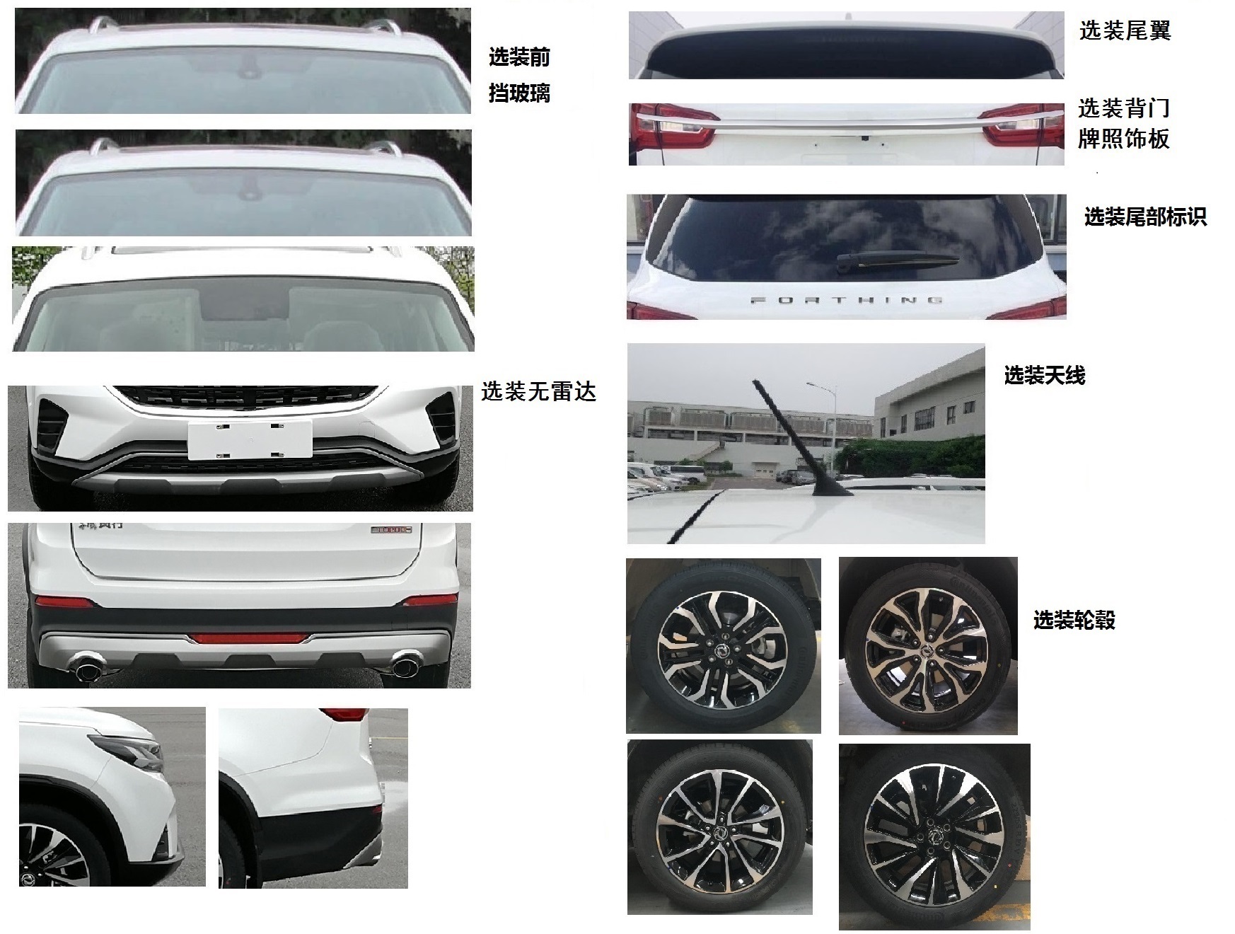 | 备注 | 发动机最大净功率(KW):100 ABS型号及厂家:ESP B 博世汽车部件(苏州)有限公司 选装前格栅,选装无雾灯,选装亮条,选装侧窗玻璃,选装天窗,选装尾门玻璃,选装门把手,选装尾灯,选装后视镜,选装摄像头,选装前挡玻璃,选装无雷达,选装尾翼,选装背门牌照饰板,选装尾部标识,选装天线,选装轮毂。 | ||