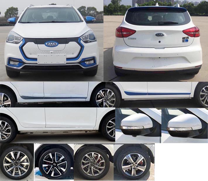 | 备注 | 该产品为新能源车辆,新能源类型为纯电动。选装:360°摄像头后视镜,不同外观的轮辋,不同颜色的后视镜/侧面装饰条/前格栅装饰/前雾灯罩装饰/后尾翼,不同样式的后部造型(后保险杠、后组合灯具、后回复反射器),左后侧翼子板装饰盖及装饰盖中车型标识,前雷达。储能装置种类及生产企业:三元锂离子电池,安徽江淮华霆电池系统有限公司。ABS型号及生产企业:ABS9 EA5010、ESP9,博世汽车部件(苏州)有限公司。注:发动机型号栏参数为驱动电机型号,发动机功率栏参数为驱动电机峰值功率。 | ||