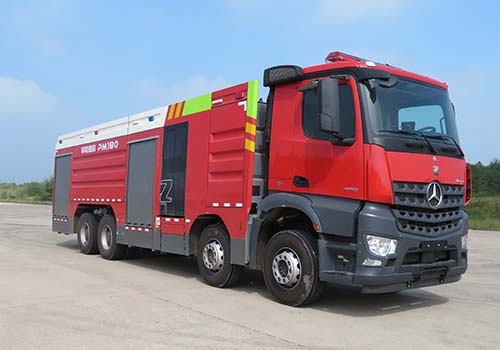 | 备注 | 罐体总容积为18.333立方米,水罐容积:15立方米,水罐尺寸:4082×2540×1490 mm,泡沫液罐容积:3.333立方米,泡沫液罐尺寸:910×2540×1490 mm。整体式侧后防护结构,后防护离地高度:455 mm。发动机最大净功率为425kW。ABS型号为EB5006,生产企业为WABCO。主要专用装置有消防泵、消防炮。 | ||