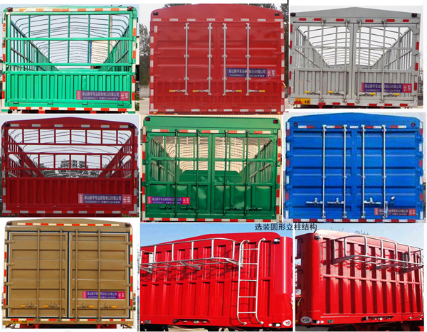 | 备注 | 车厢底板至仓栅顶部高度及对应总高度为1800mm(3400mm,3350mm),2000mm(3600mm,3550mm),2200mm(3800mm,3750mm),2400mm(4000mm,3950mm),牵引销到车辆前端的距离/车长/轴距/后悬对应关系为(mm):1300/10000/4880+1310+1310/1200,1300/10000/4680+1310+1310/1400;1000/9500/4680+1310+1310/1200,1300/9500/4480+1310+1310/1100;910/9010/4480+1310+1310/1000;选装钢板弹簧悬挂,选装长锁杠或短锁杠或隐形锁杠的对开门仓栅结构,可选装两层,三层仓栅,后部选装花栏式后门,三开扇式后门,对开式半封闭后门,对开全封闭样式,后门厢板可为横瓦楞,竖瓦楞,镀锌板,铝合金板,方管平板,方管十字花平板后门;整车货厢栏板选装横瓦楞,竖瓦楞,镀锌板,铝合金板,方管平板,方管十字花样式,侧面厢板可选装四开扇,五开扇,六开扇,七开扇,立柱可选内插,外插样式,选装大梁异型孔结构;选装前档圆形立柱结构;选装前部样式,选装内置锁具结构,选装后组合灯/雾灯为圆形结构,选装号牌板结构;一,ABS:型号:CM2XL-4S/2M,生产厂家:广州瑞立科密汽车电子股份有限公司.选装ABS型号:HNABS4S/4M;生产厂家:梁山海纳电子科技发展有限公司.二,防护:防护材料均采用Q235,与车辆连接方式为焊接.后防:离地高度为490mm,断面为140mm×55mm. | ||