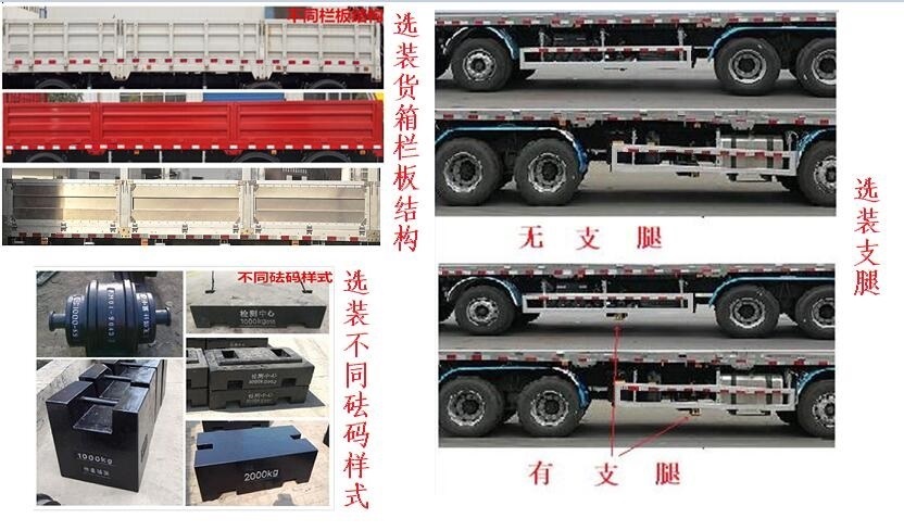 | 备注 | 1.主要用于技术监督局或计量检测所配备检测汽车衡器专用移动式计量检定车,专用装置为随车起重机,砝码;2.砝码是计量检衡车中的固定装置,选装质量相等外形为圆形或矩形砝码(根据汽车衡来选装),砝码可选用质量 1000kg 级别或 2000kg 级别的,砝码总质量15000kg; 3.侧防护装置所用材料为铝合金,与车架螺栓连接,后下部防护装置所用材料为Q235,与车架焊接固定,截面尺寸为:120×60(mm),离地高470mm;4.随底盘选装驾驶室,选装顶置空调,选装不同的货箱栏板结构,选装支腿,选装后操作平台形式;5.选装起重机型号,最大起重载荷,自重分别为:(PK15500、SPK15500、HB150、SQZ160、HIAB X-CLX178)/7100kg/2350kg,(PK23500、SPK23500、HB250、SQZ200、HIAB X-CLX248)/8500kg/2650kg,(PK27001、HB280、SQZ200、HIAB X-CLX288)/8900kg/2850kg;6.装有ABS, ABS系统型号为4460046300,生产企业为威伯科汽车控制系统(中国)有限公司;7.安装具有卫星定位功能的行车记录仪;8.尺寸对应关系(总长=前悬+轴距+后悬)(mm):11990=1475+1950+4625+1350+2590=1475+1950+4600+1400+2565,11670=1475+1950+4625+1350+2270=1475+1950+4600+1400+2245,10580=1475+1950+3825+1350+1980=1475+1950+3800+1400+1955, 10280=1475+1950+3825+1350+1680=1475+1950+3800+1400+1655. | ||