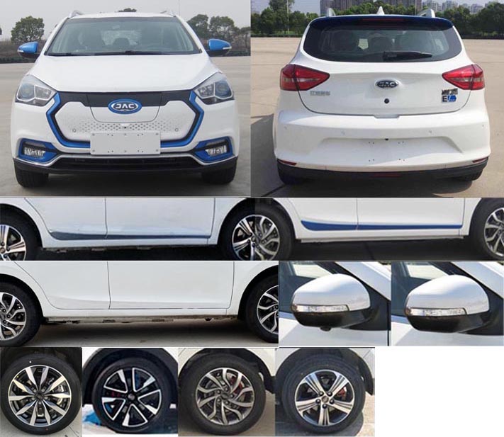 | 备注 | 该产品为新能源车辆,新能源类型为纯电动。选装:360°摄像头后视镜,不同外观的轮辋,不同颜色的后视镜/侧面装饰条/前格栅装饰/前雾灯罩装饰/后尾翼,不同样式的后部造型(后保险杠、后组合灯具、后回复反射器),左后侧翼子板装饰盖及装饰盖中车型标识,前雷达,不同样式的尾部字标。储能装置种类及生产企业:三元锂离子电池,安徽江淮华霆电池系统有限公司。ABS型号及生产企业:ABS9 EA5010、ESP9,博世汽车部件(苏州)有限公司。注:发动机型号栏参数为驱动电机型号,发动机功率栏参数为驱动电机峰值功率。 | ||