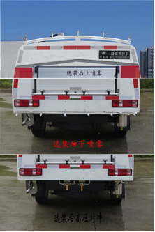 | 备注 | 随底盘可不选装前雾灯,ABS控制系统型号/生产企:YF8/武汉元丰汽车电控系统有限公司,选装配置:后上喷雾、后下喷雾、后高压对冲、右侧喷水装置,选装这些装置引起的重量及整车尺寸变化可以忽略不记,该车主要通过高压水枪等专用装置对非机动车道、护栏、路肩等养护作业。 | ||