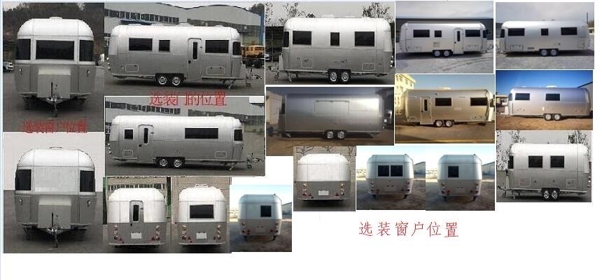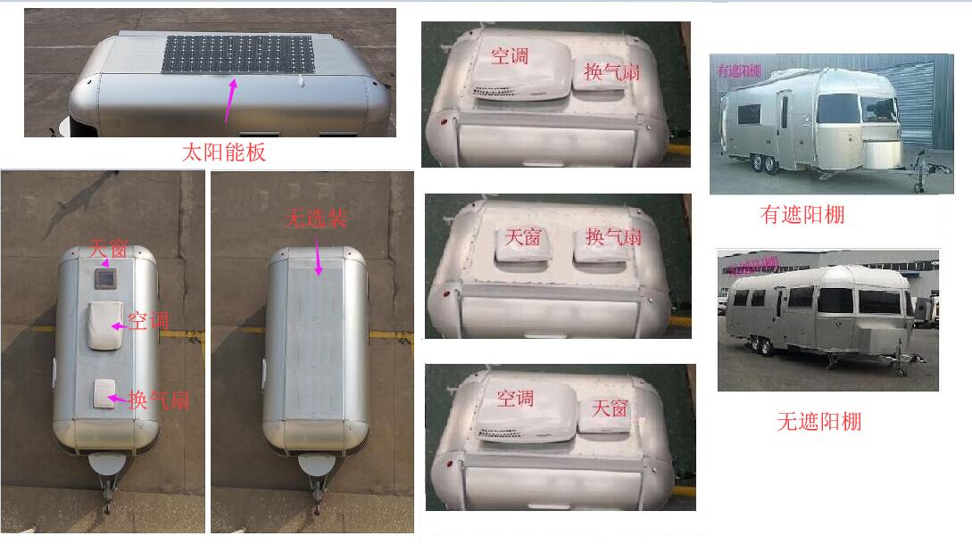 | 备注 | 1.顶部封闭,不可开启;2.选装遮阳棚时车宽2550mm,不选装时车宽2470mm;3.顶部选装天窗时对应高度为2685mm,选装换气扇时对应高度为2720mm,选装空调时对应高度为2880mm,选装太阳能板及未选装时对应高度为2600mm;4.根据内部布置选装开窗位置大小及门的开启方式位置;5.牵引杆深入量为60mm,连接器最大负荷200kg;6.该车非乘用车,行驶过程中不载人;7.厢体内安装有床铺,桌柜,卫生设施等旅居专用设备. | ||