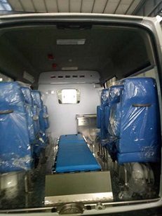 | 备注 | 该车配备医疗器械柜,氧气瓶,担架,消毒灯等救护专用设备。专用装置:内置担架一副。选装左侧右侧报闪灯,选装顶部换气扇,选装侧拉门踏板,选装后部踏板,车顶后尾翼,前顶凸台。选装异形顶部结构时的高度为mm:2460,选装内部图片。ABS系统控制器型号:EV5051,生产厂:博世汽车部件(苏州)有限公司。 | ||