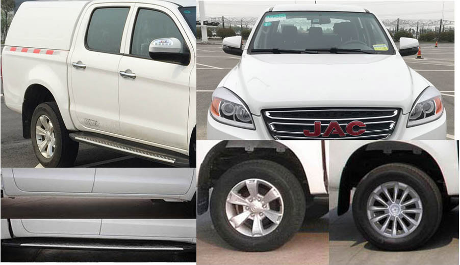 | 备注 | 1.选装轮辋,侧踏板,外后视镜,侧转向灯,前后组合灯,前后雾灯,后回复反射器,中网,前后保险杠,轮眉;2.ABS型号:ESP9 EV5010,企业:博世汽车部件(苏州)有限公司;3.发动机最大净功率为130kW,油耗申报值为11L/100km;4.车厢顶部封闭不可开启.厢盖两侧和后部选装黑膜。5.选装不同造型的货厢,导风罩,行李架,整体式后尾门. | ||