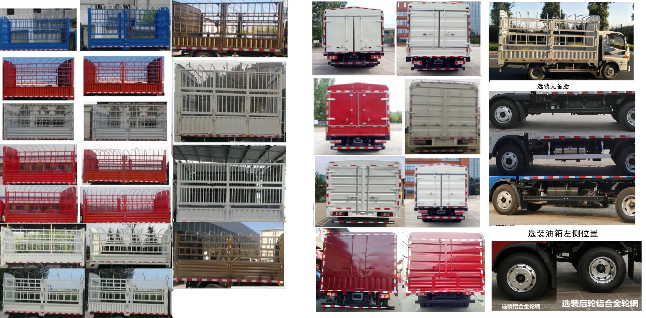 | 备注 | 1.货箱底板到仓栅顶部高度为1700mm,2000mm,2200mm,2300;2.发动机F3.8NS6B156对应的油耗申报值(L/100km)为11.4;3.ABS型号/厂家为VIE ABSⅡ/浙江万安科技股份有限公司;4.侧面及后下部防护装置材料为Q235,连接方式为螺栓连接,后部防护装置断面尺寸(长×宽):120mm×60mm,离地高度为490mm;5.选装不同样式的导流罩;6.选装货厢风格,选装后开门的样式;7.选装货厢系固装置;8.选装液压尾板,尾板收起状态的水平长度为295mm | ||