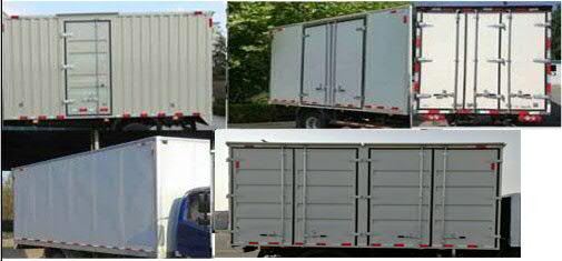 | 备注 | 1.ABS系统型号/生产企业:YF8/武汉元丰汽车电控系统有限公司。2.电池种类/生产企业:磷酸铁锂电池/北京普莱德新能源电池科技有限公司。3.电机型号/生产企业:FTTB060/北汽福田汽车股份有限公司,额定功率:60kw,峰值功率:100kW。4.选装前围格栅和灯罩。5.导流罩为选装件可不装;选装两侧单开门、双开门、四开门、无侧开门货箱;选装后部三开门;选装瓦楞板及彩涂板货厢材质,选装不同材质的货箱;选装侧裙板造型(侧裙板打开后,里面有防护);选装智蓝新造型;选装LED前雾灯。6.侧防护的连接方式是与电池箱体相连,侧防护材料为冷板B2.0/20;后防护连接方式是与车架纵梁螺栓连接,后下部防护装置材料为Q345A;后部防护装置截面尺寸100×50mm,后防护距离车辆离地的高485mm。7.货厢顶部封闭不可开启。 | ||