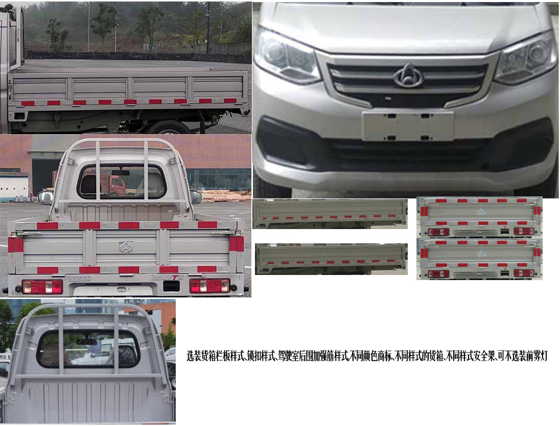 | 备注 | 1.选装部件:MP5,倒车可视,电动门窗,中控锁,空调,选装不同颜色商标,选装不同样式的货箱,不同样式安全架,可不选装前雾灯.2.LJ469Q-AEB发动机对应油耗值为6.7L/100km,最大净功率为62kW,尺寸对应关系:整车长/后悬/货厢长:4755/950/2820,2865;5135/1330/3050.3.ABS控制系统型号/生产企业/控制方式:YF8/武汉元丰汽车电控系统有限公司/四通道式. | ||