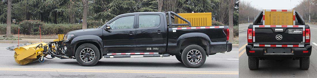 | 备注 | 1.该车专用装置由除雪滚刷、除雪铲、动力装置、融雪剂撒布装置等组成,用于冬季除雪作业.2.基础型整车后部安装融雪剂撒布装置时后悬1695mm,整车长度为5995mm,高度为1855mm,整备质量为2290kg,接近角32°,离去角18°.3.作业时可在车前装备除雪铲,后部安装撒布机.前伸/后悬分别为(mm):985/1695,整车长度6980mm,整备质量:2420kg,接近角10°,离去角18°;4.可在车前部安装除雪滚刷 (安装除雪滚刷时选择单独动力装置为滚刷提供动力)前伸1300mm,后悬为1260mm,整车长度6860mm,高度为1855mm.整备质量为2635kg,接近角10°,离去角26°.ABS系统控制器型号:APG3550500G,生产厂家:浙江亚太机电股份有限公司. | ||
