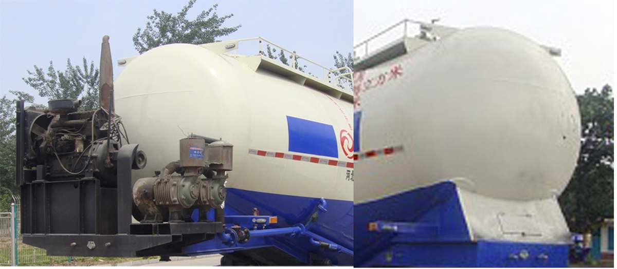 | 备注 | 罐体长度8700mm,最大截面高3100mm,最大截面宽度2500mm,封头直径1910mm.有效容积28立方米,运输介质:固井专用水泥,密度1200千克/立方米.选装双缸空压机结构.选装不带机组平台结构.不带机组平台结构时对应整备质量为7080kg,整车尺寸:长为9000mm,宽为2550mm,高为4000mm;装配机组平台时,整车尺寸:长为9800mm,宽为2500mm,高为3900mm.ABS型号:CM2XL-4S/2M.生产企业:广州瑞立科密汽车电子股份有限公司.侧面及后下部防护装置材料为Q235,连接方式为焊接.后防护断面尺寸50X130mm,离地高530mm.该车顶部封闭不可开槽,后部不可开启. | ||