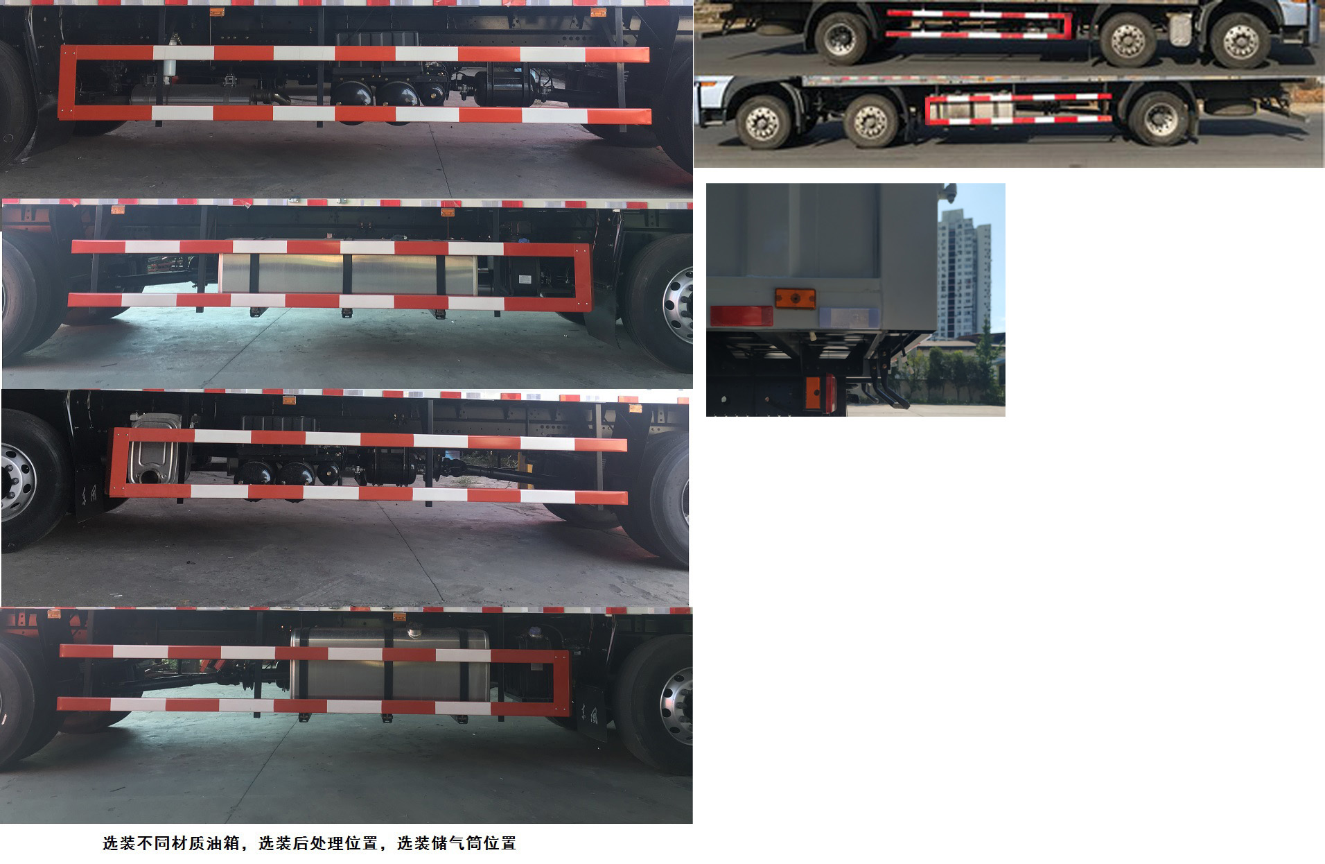 | 备注 | 选装仅高度不同的驾驶室,高顶驾驶室顶部气喇叭为选装件,选装侧窗装饰板.选装前雾灯,驾驶室顶部装饰灯为选装件.选装油箱及排气管安装位置.厢体顶部封闭,不可开启,侧面选装开门和不开门二种型式,厢体选装平面和瓦楞板结构型式.选装驾驶室前面罩;选装驾驶室及对应灯具和后视镜;平顶驾驶室选装导流罩,高顶驾驶室选装后侧扰流板.选装升降尾板,尾板收起状态时的水平长度为295mm;侧防护:材质Q235,连接方式螺栓连接.后下防护:材质Q235,连接方式螺栓连接,断面尺寸120×60mm,离地高度490mm;安装有卫星定位功能的行驶记录仪.ABS型号和厂家:4460046440,威伯科汽车控制系统(中国)有限公司;ABS 8,东科克诺尔商用车制动系统(十堰)有限公司;J ABS,焦作博瑞克控制技术有限公司. | ||