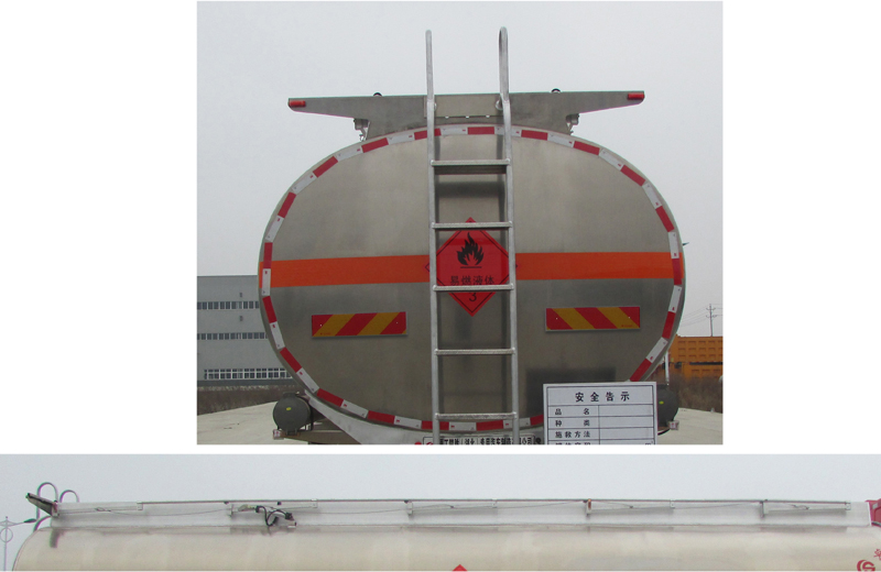 | 备注 | 1、该车适用于危险货物运输,运送危险货物车辆类型为:FL型。类项号:3,装配限速装置,限速80km/h;运输介质:汽油,密度:700千克/立方米,,罐体有效容积20立方米,罐体外形尺寸(长×宽×高)(mm):7200×2450×1650。罐体上部选装无上走道;罐体后部选装直爬梯。工具箱可装在车架左侧或右侧且安装位置可前后变化。2、侧/后防护材料为冷弯型钢Q235,侧防护螺栓连接,后防护焊接,截面尺寸120×50mm,下边缘离地高500mm。3、随底盘选装驾驶室;仅选用消声器前置、限速装置、前轮盘式制动及子午线轮胎的底盘;安装带卫星定位功能的行驶记录仪;ABS型号/厂家:3631010-C2000 /东科克诺尔商用车制动系统(十堰)有限公司。仅用轴距(mm):4350+1300;采用发动机的油耗值(L/100Km)均为:35.3。 | ||