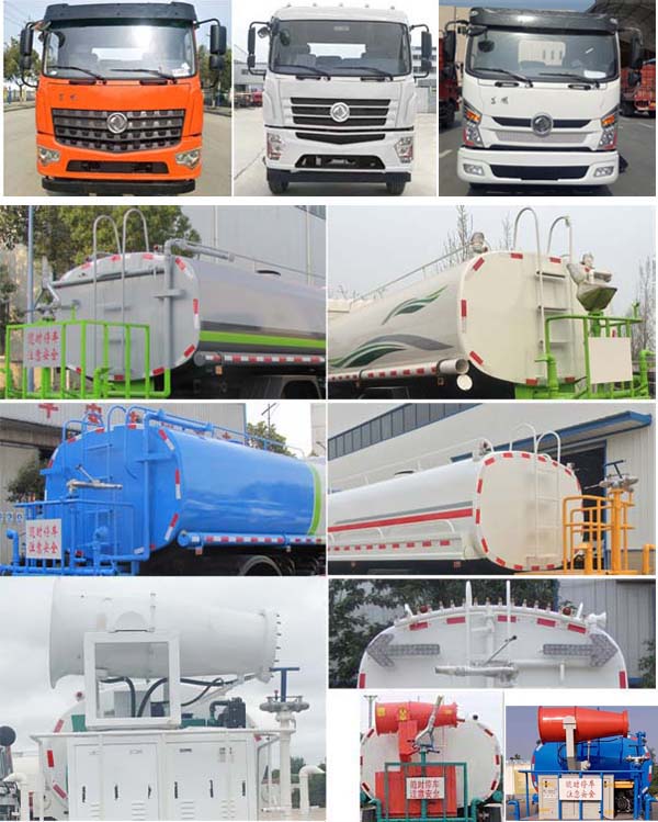 | 备注 | 罐体有效容积:11.68立方米,整车长/轴距/罐体外形尺寸(长×长轴×短轴)对应关系为(mm):8650,8400/4500/5200×2300×1400,4580×2400×1500;7700,7500/3950/4300×2400×1600,4200×2350×1450,3800×2400×1550.随底盘选装驾驶室及遮阳板.选装后高位花洒,选装方圆管道,选装方圆罐型,选装后雾炮装置,选装后弧形喷雾.选装LED箭头指示灯.选装车辆颜色.侧后防护采用Q235材质焊接连接,后部防护断面尺寸(mm):50×120,后部防护离地高度(mm):550.ABS型号为:3631010-C2000,生产厂家分别为:东科克诺尔商用车制动系统(十堰)有限公司. | ||