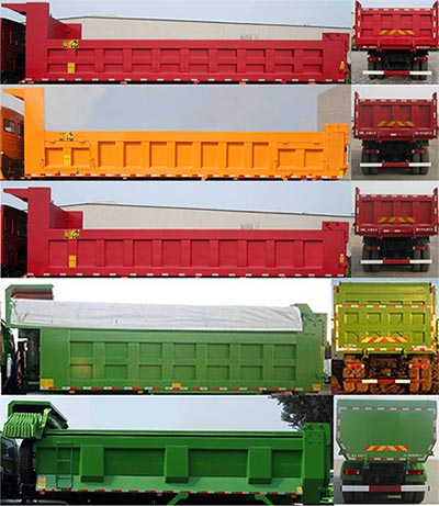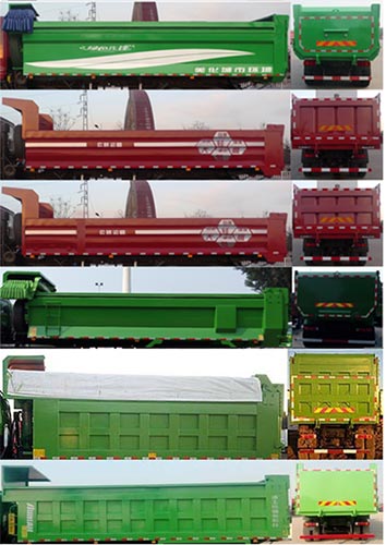 | 备注 | 选装新前围装饰件及护轮罩板;自卸方式为后卸.选装高顶驾驶室,选装不同货箱结构.选装环保盖(环保盖质量250kg,环保盖质量引起的整备质量变化小于3%,可忽略不计).货箱长度7400/7600mm,整车长度10380/10480mm,整车后悬1748/1848mm;侧防护装置材料:Q235;后防护装置材料:Q235;后防护装置断面尺寸:120×80mm,后防护离地高度:440mm;侧防护装置连接方式:螺栓连接,后防护装置连接方式:螺栓连接;发动机型号/净功率(kw)/油耗值(L/100km)对应关系: WP12.336E50/ 242/44.7,WP12.375E50/271/44.7,WP12.430E50/311/44.7,WP10.310E53/223/44.7,WP10.336E53/242/44.7.WP10.350E53/252/44.7,WP12.400E50/289/44.7,WP12.460E50/333/44.7.ABS系统型号/生产企业对应关系:ABS/ASR-24V-4S/4M/东科克诺尔商用车制动系统(十堰)有限公司.CM4XL-4S/4M/广州瑞立科密汽车电子股份有限公司.安装具有卫星定位功能的行驶记录仪. | ||
