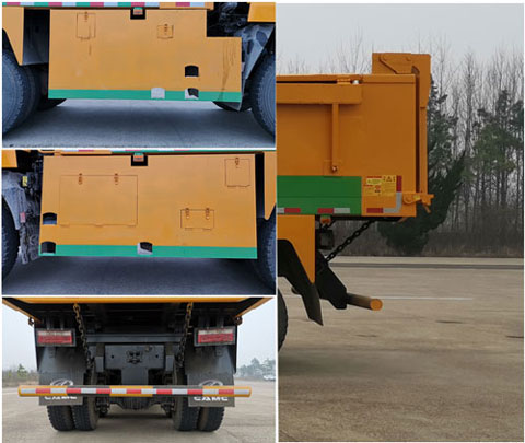 | 备注 | 1.随底盘选装驾驶室,选装驾驶室侧围;2.货箱可选装环保顶盖,环保顶盖重120kg,环保顶盖质量包含在整车整备质量内,选装不同外型货箱;卸载方式为后卸;3.应装具有卫星定位功能的行驶记录仪;4.仅选用3600+1350mm轴距,尺寸对应关系(mm)(整车长度,货箱长度,后悬):①7880,5400,1560;②8080,5600,1760;③8280,5400,1960;④8480,5600,2160;5.防护装置信息:侧防护材料为Q235,螺栓连接;后防护材料为Q235,螺栓连接,断面尺寸50×120mm,离地高480mm;6.ABS信息:ABS型号:ABS/ASR-24V-4S/4M,ABS生产企业:东风电子科技股份有限公司;7.CM6D18.310 50、CM6D18.345 50、WP10.350E53发动机对应的油耗值均为42.5L/100km;7.侧防护选装裙板式结构;后防护选装圆柱体结构,材料为Q235,螺栓连接,断面尺寸Φ120,离地高500mm. | ||