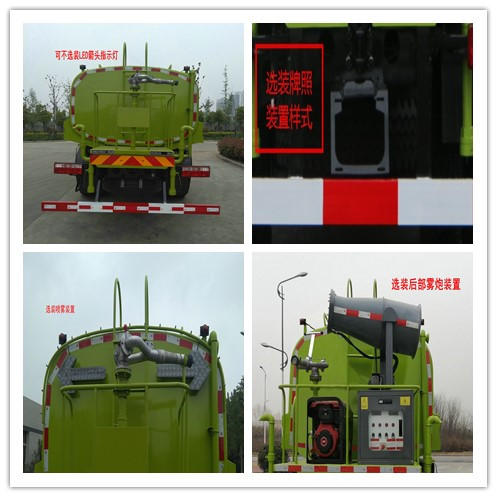 | 备注 | 1.罐体运输介质:水,密度1000千克/立方米,罐体有效容积:10.8立方米,整车外形尺寸长/轴距/罐体外形尺寸(长×长轴×短轴)对应关系:8420/4700/5000×2200×1300,8220/4500/5000×2200×1300,7670/3950/4300×2250×1450;2.选装喷雾装置,可不选装LED箭头指示灯,选装牌照装置样式;3.侧,后防护采用Q235材质,侧防护采用螺栓连接;后防护采用螺栓连接,截面尺寸为(宽×高)53×120(mm),后防护离地高度460mm;4.ABS系统型号/生产厂家:J ABS/焦作博瑞克控制技术有限公司;5.专用装置为水罐及水泵,主要用于城市道路洒水和园林绿化. | ||
