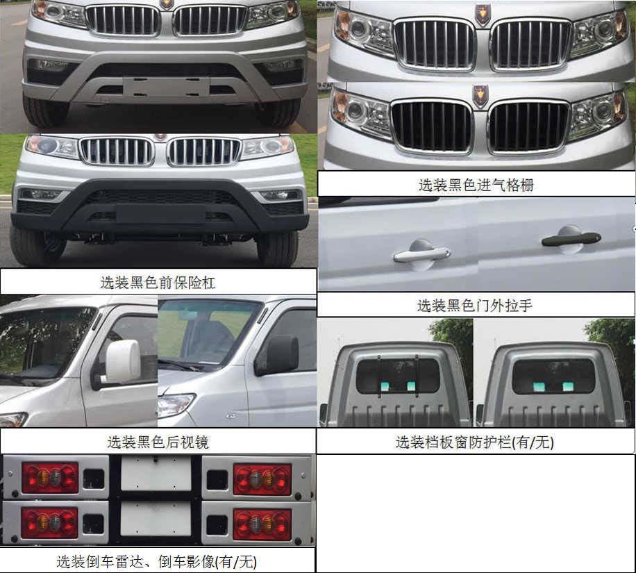 | 备注 | SWC15M发动机最大净功率为72KW,油耗申报值为7.5L/100km.选装(MP5,黑色前保险杠/门外拉手/后视镜/进气格栅,档板窗防护栏,倒车雷达,倒车影像).ABS型号/生产企业:YF8/武汉元丰汽车电控系统有限公司.该车型符合国六标准b阶段限值要求. | ||
