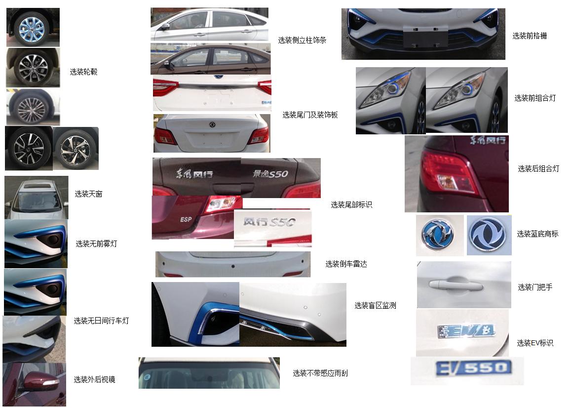 | 备注 | 动力蓄电池种类:三元锂蓄电池;动力蓄电池生产企业:苏州星瑞合电气有限公司;允许外接充电;ABS型号:ESP B,生产企业:博世汽车部件(苏州)有限公司;电动机额定功率40 kW,峰值功率90kW; 选装轮毂、选装天窗、选装无前雾灯、选装无日间行车灯、选装外后视镜、选装不带感应雨刷、选装侧立柱饰条、选装尾门及装饰板、选装尾部标识、选装倒车雷达、选装盲区监测、选装前格栅、选装前组合灯、选装后组合灯、选装蓝底商标、选装门把手、选装EV标识、选装前保险杠及前格栅、选装后保险杠、选装侧面裙板 | ||